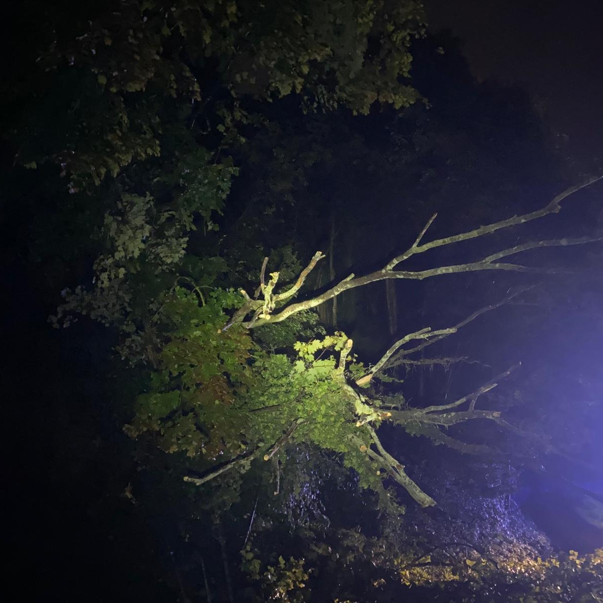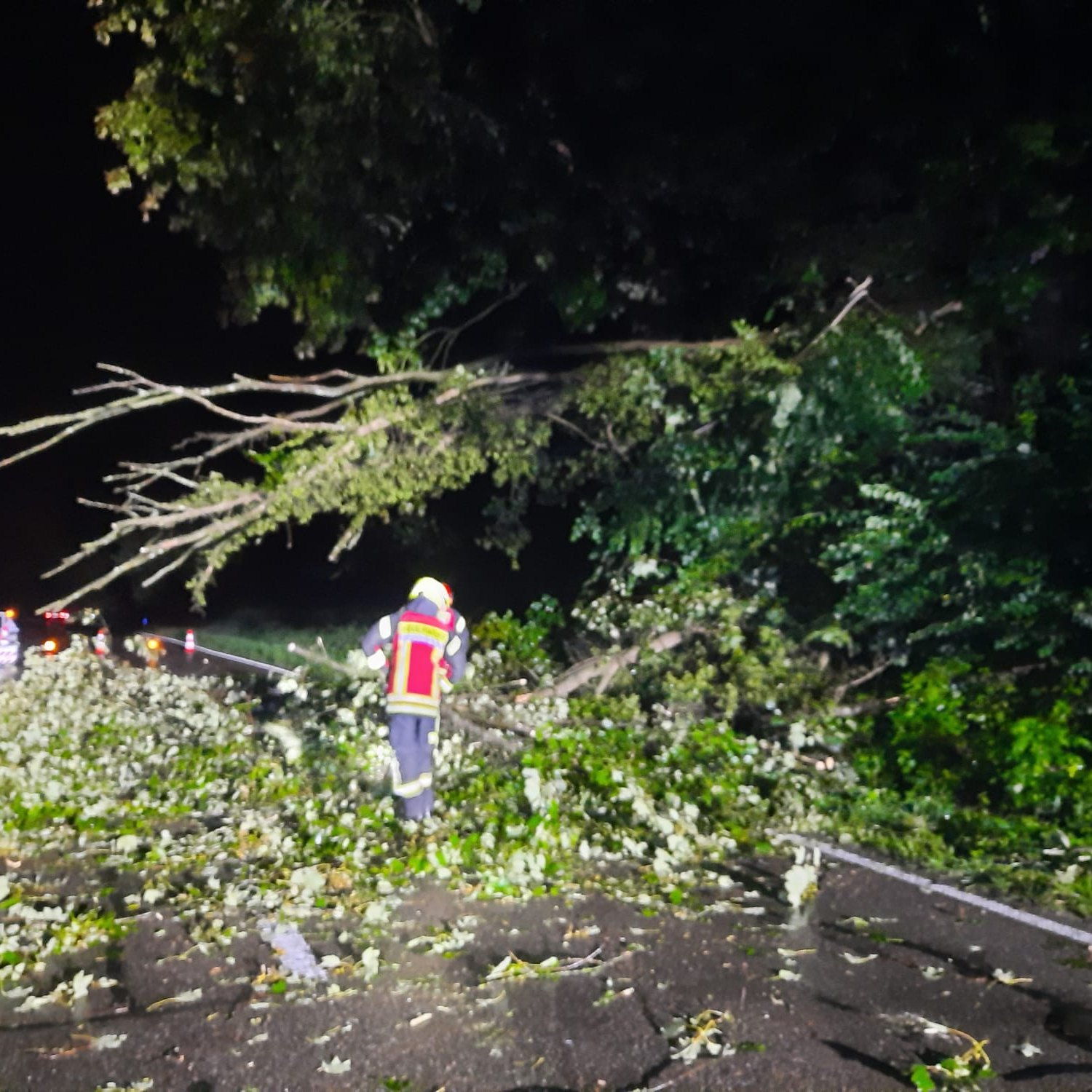 📟TH1 Unwetterlage, mehrere Bäume auf Straße