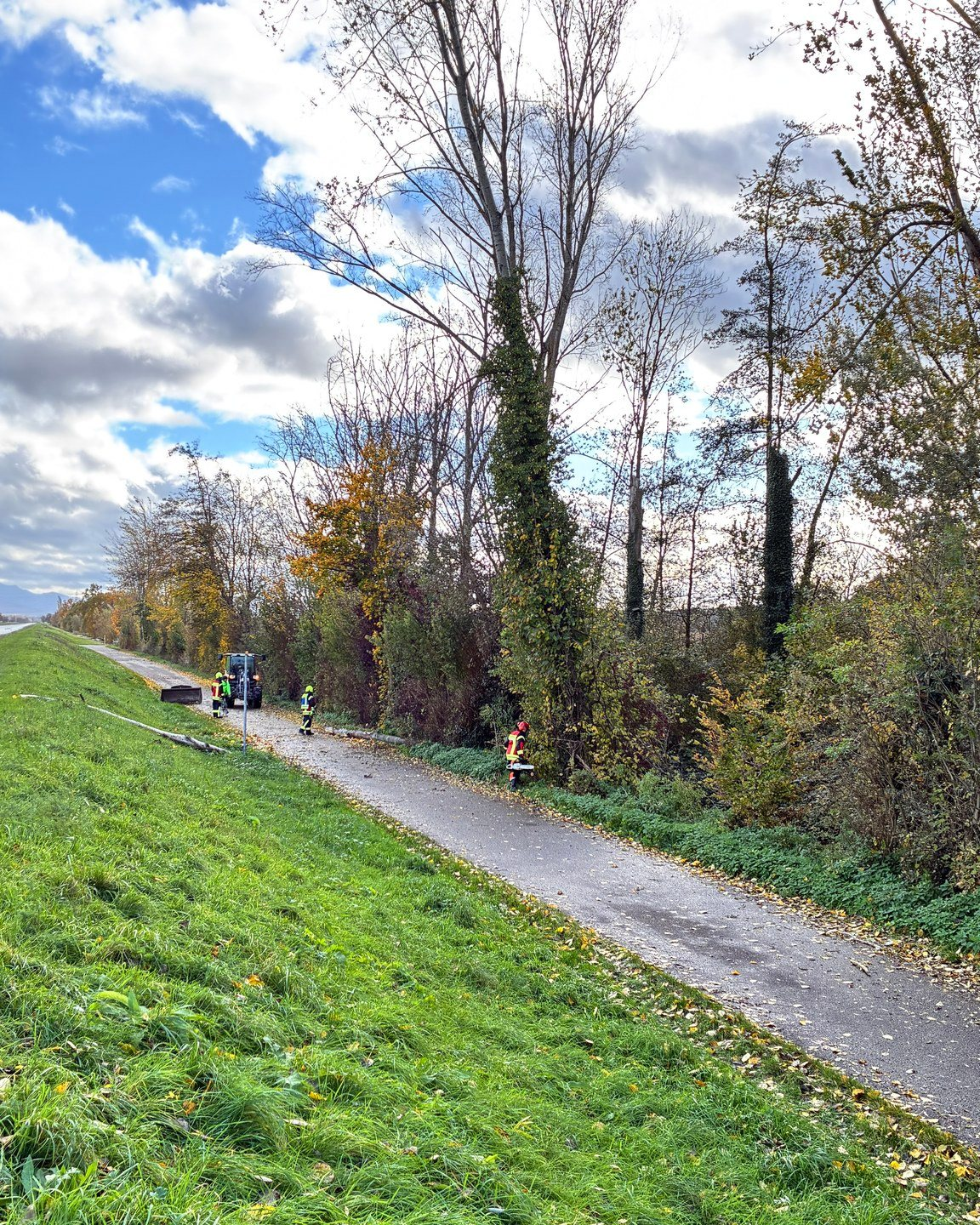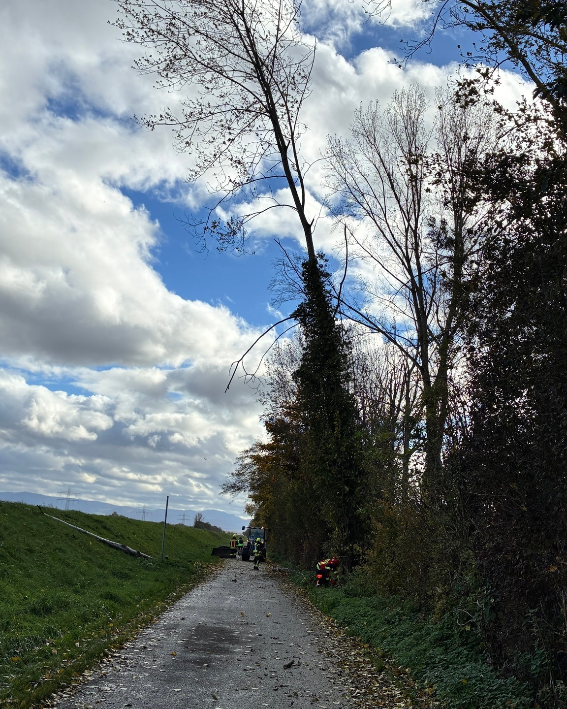 Aufgrund des windigen Wetters an dem Tag und der anhaltenden Regelfälle gerieten zwei größere Bäume in Schieflage bzw. ein Baum war bereits umgestürzt und versperrte den Wirtschaftsweg nach Bahlingen. Der zweite Baum wurde gefällt und anschließend wurden beide Bäume kleingesägt und an den Wegrand gelegt. Die Straße konnte somit wieder frei gemacht werden.
